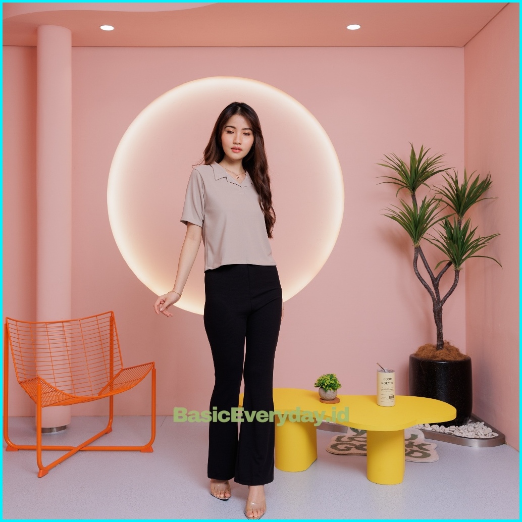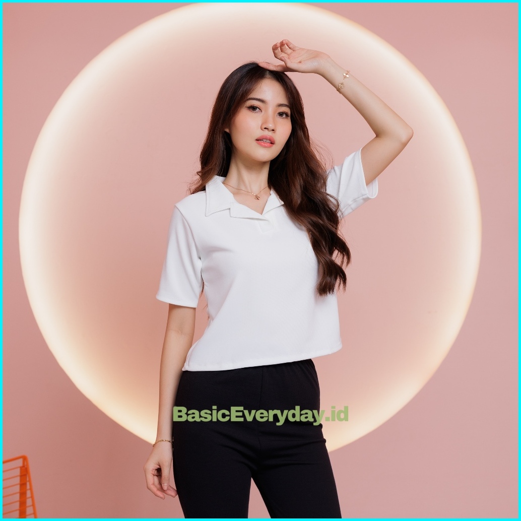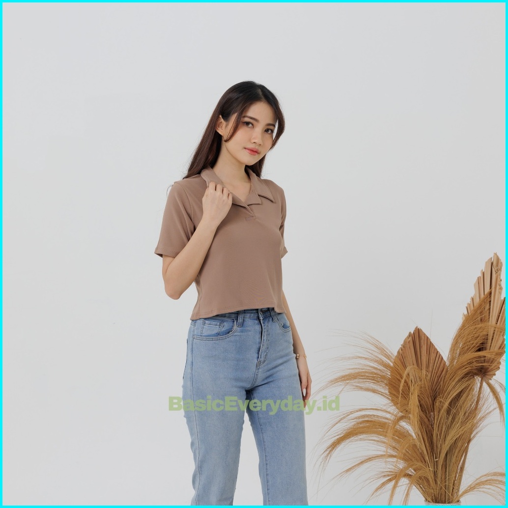 Basiceveryday Basic Polo Crop Top Wanita Baju Polo Shirt Be01
