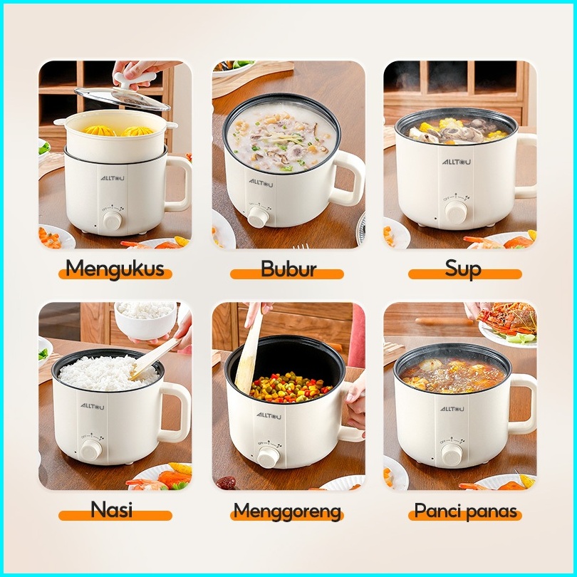 Alltou Panci Listrik Multifungsi 1.8l Cooker Kompor Listrik Pintar Pelajar Panci Listrik Asrama Perjalanan Bisnis