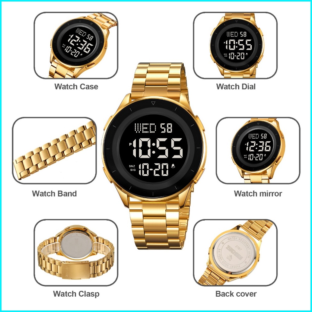 Skmei 2167 Jam Tangan Pria Digital Tali Stainless Rantai Mgos