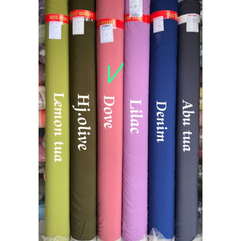 Hitam, Putih, Warna sesuai chat, Nevy, Maroon, Hijau Tua, Lavender, Dusty Pink, Abu Tua, Abu muda, Biru wardah, Hijau wardah, Putih tulang, Hijau toska, Sage tua, Sage muda, Ungu terong, Lilac, Coksu, Mocca, Cokelat Tua, Hijau botol, Mocca tua, Mustard, Milo, Turqis, Biru toska, Toska muda, Muve, Salem, Peach, Mint, Biru mint, Denim, M. Bata, Hijau alpukat, Biru langit, Lemon, Dusty ungu, Biru bca, Crem, Ungu Tua, Pink fanta, Magenta, Olive, Caramel, Latte, Taro, Hazelnut, Hijau NU
