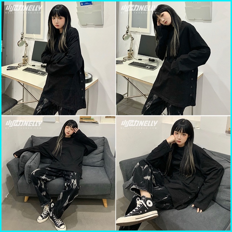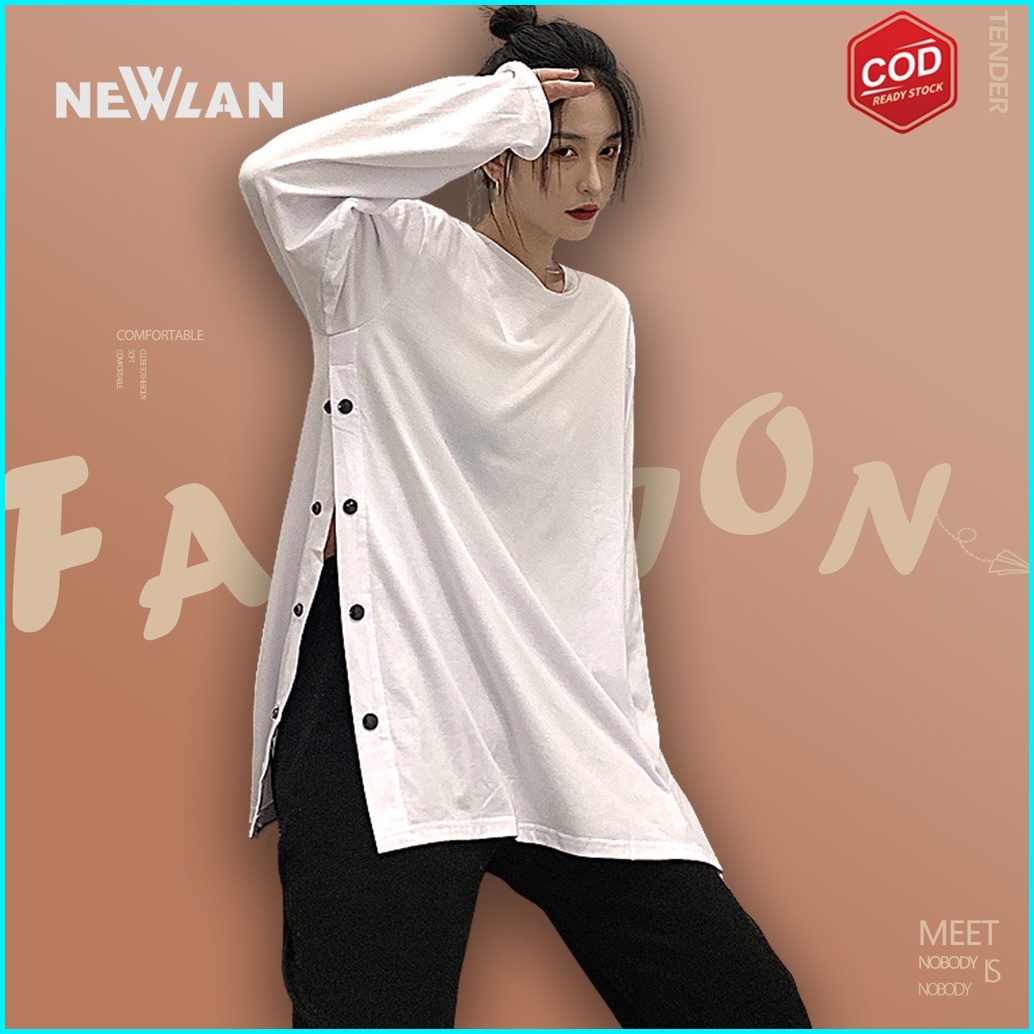 Newlan Zz005 Kaos Oversize Wanita T Shirt Oversize Crop Tee Oversize Korean Women Atasan Rajut Kancing