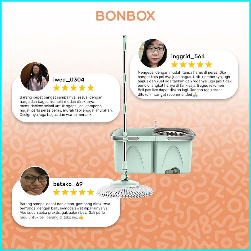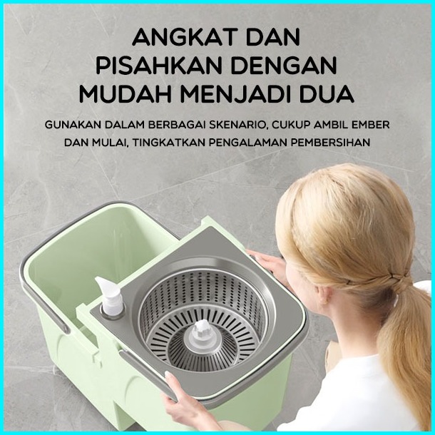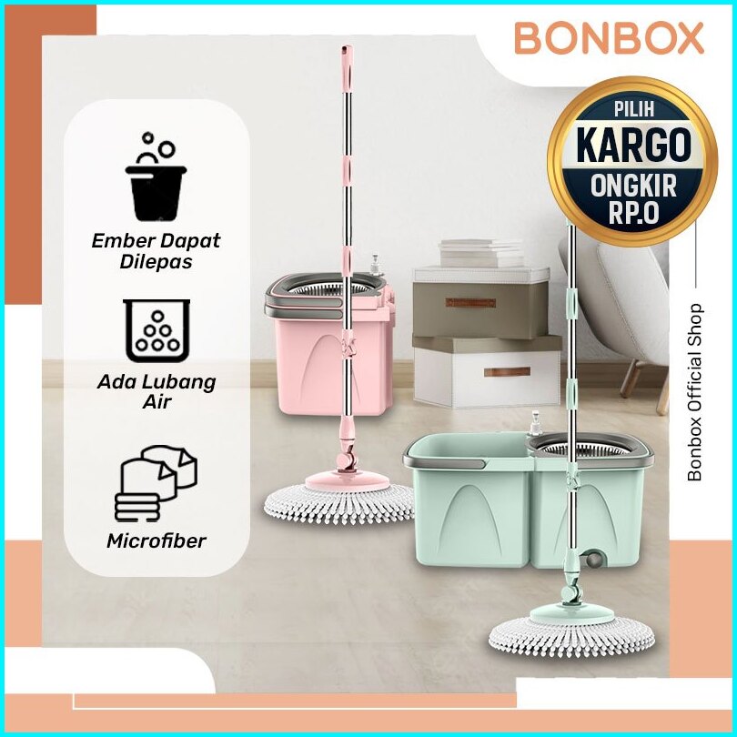 30kbonbox Alat Pel Lantai 2in1 Dapat 2 Kain Refill Ember Lepas 2 Kain Pel Terpisah Spin Mop Pembersih Lantai Bct706