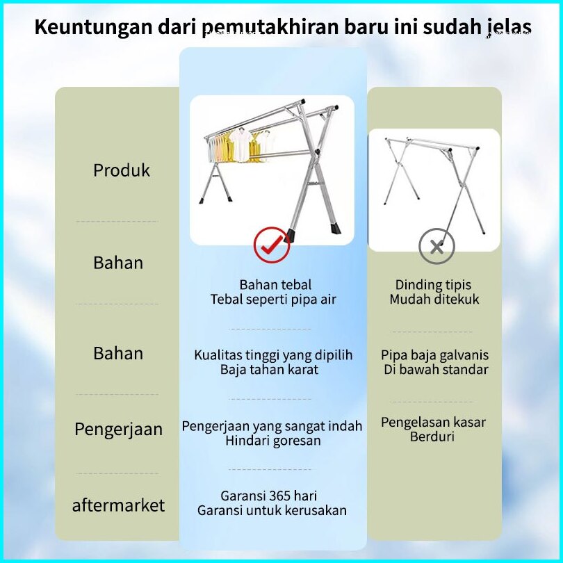 Versi Yang Diperbarui Jemuran Baju Stainless Steel Jemuran Jemuran Baju Lipat Stainless Steel Portabletidak Diperlukan I