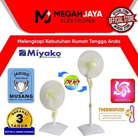 Kipas Angin Duduk Miyako 2 In 1 Stand Fan+Desk Fan 16 Inch KAS1627 KB Original Official Store