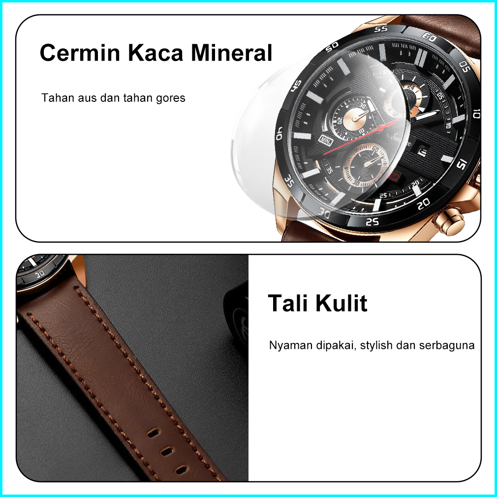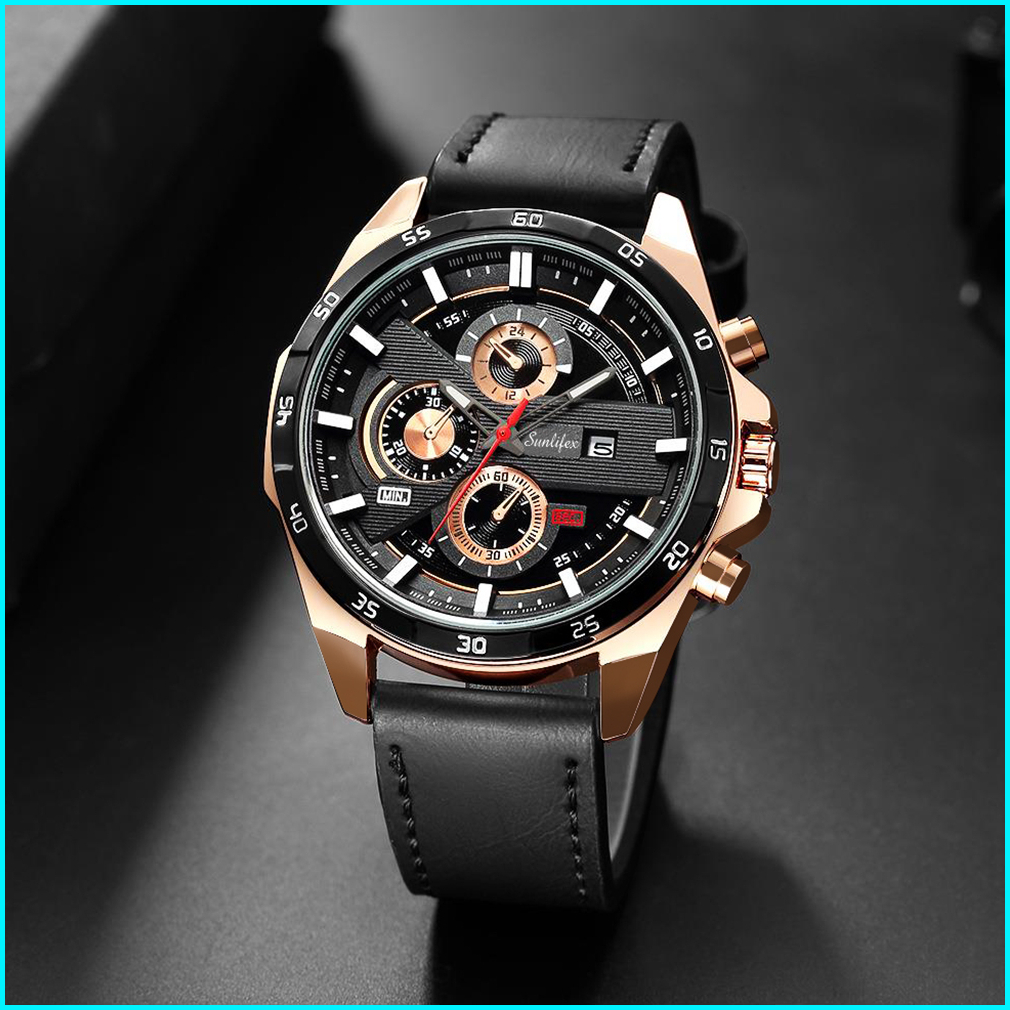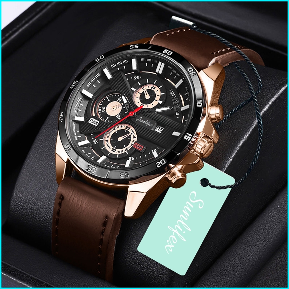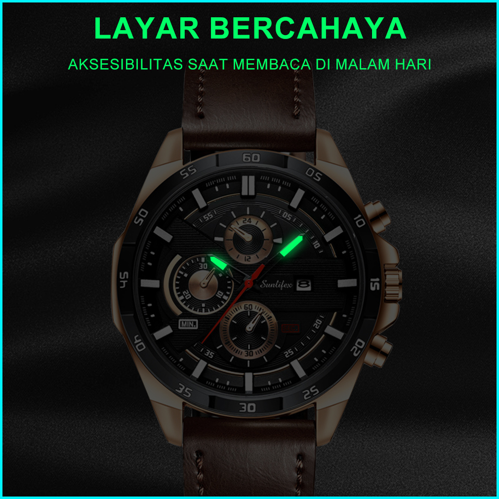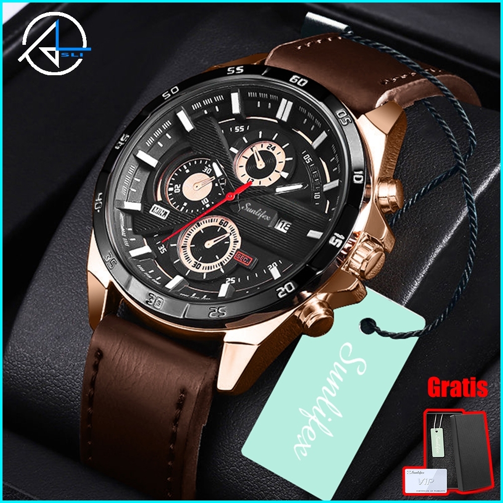 Sunlifex Jam Tangan Pria Original Olahraga Anti Air Pria Tali Kulit Kalender Luminous Jam Tangan Cowok Free Box Kartu