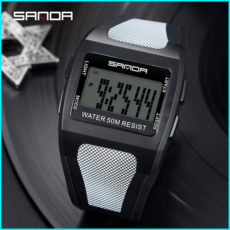 Sanda 222 Jam Tangan Pria Digital Sport El Backlight Tali Rubber Anti Air