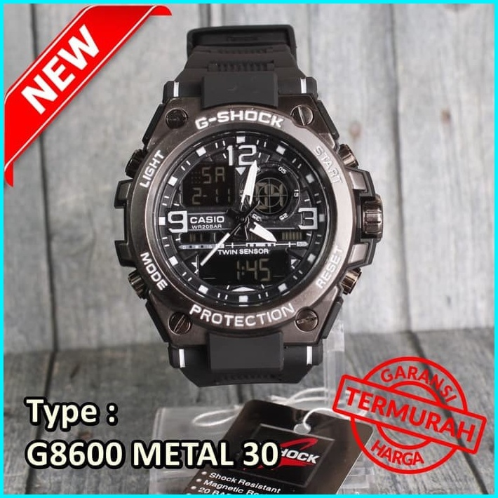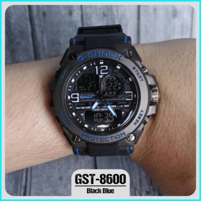 Jam Tangan Kotak Gratis Pria Gshock Gst-8600 Casio G Shock Gst8600 Karet Logam Tahan Air
