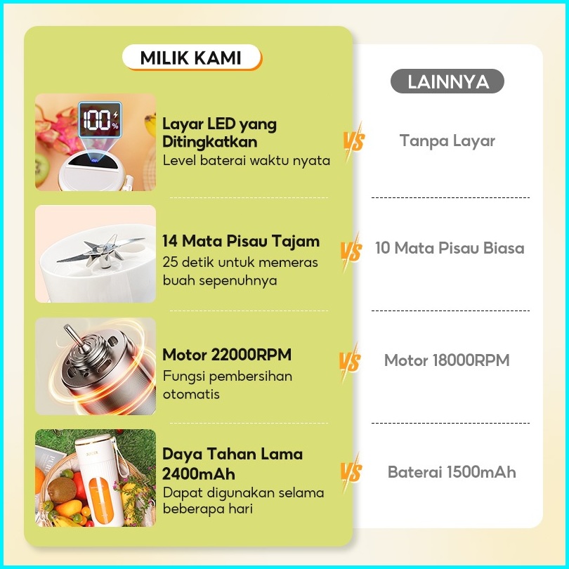 Alltou Blender Portable Mini 14 Pisau Juicer 450ml Rechargeable Jus Blender 2400mah Mixer