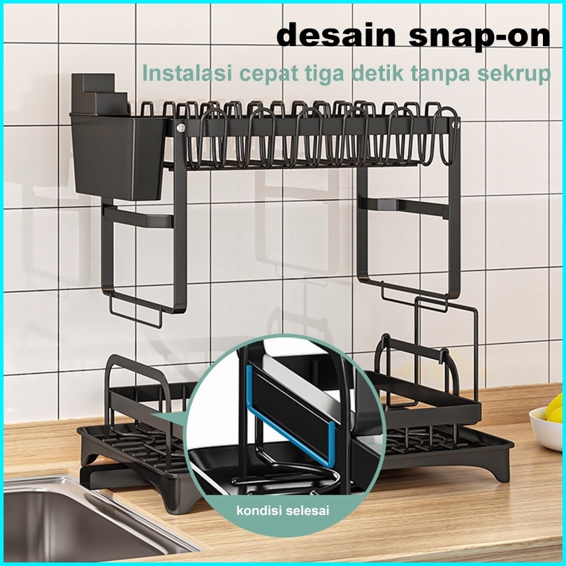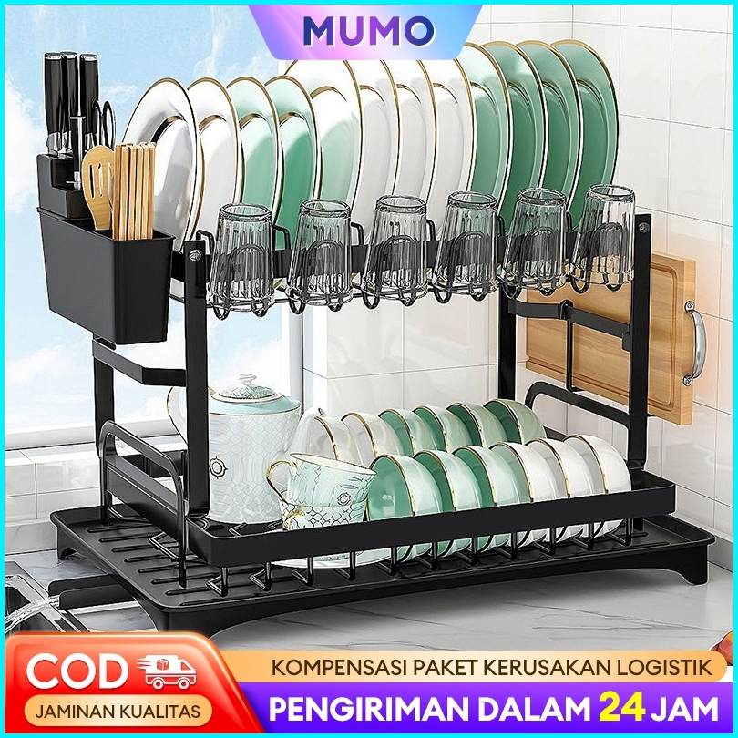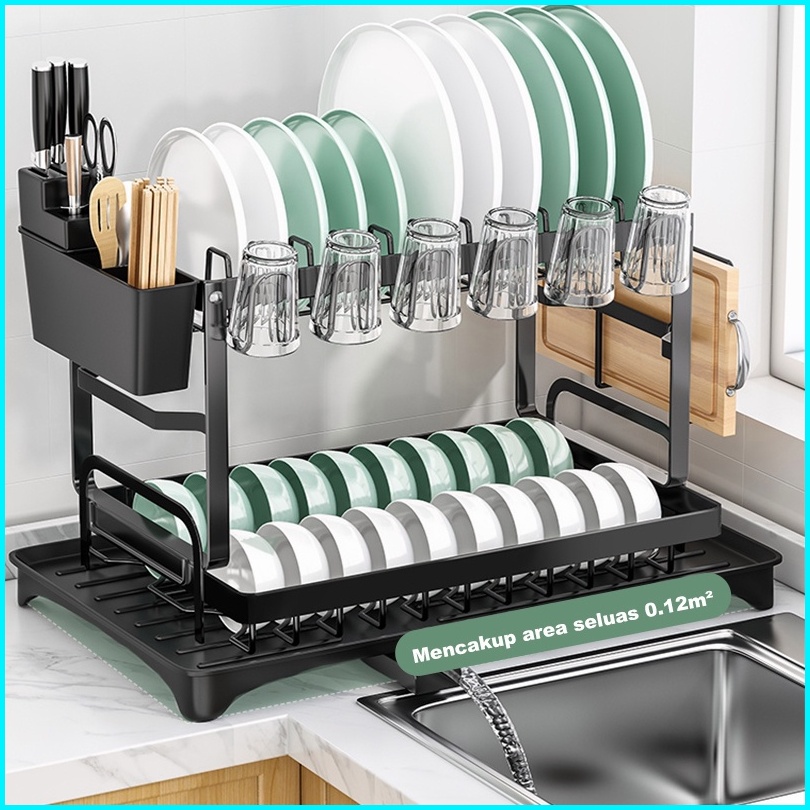 Rak Piring Dapur Stainless Steel Rak Pengering Piring Rak Cangkir Rak Mangkuk Piring Dengan Baki