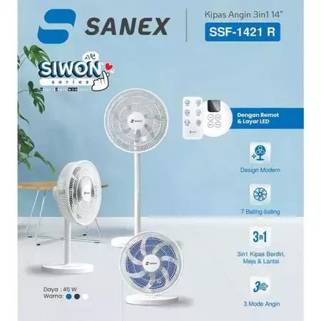 Kipas Angin Duduk Sanex 2 In 1 Stand Fan+Desk Fan 14 Inch SSF1421R Original Official Store