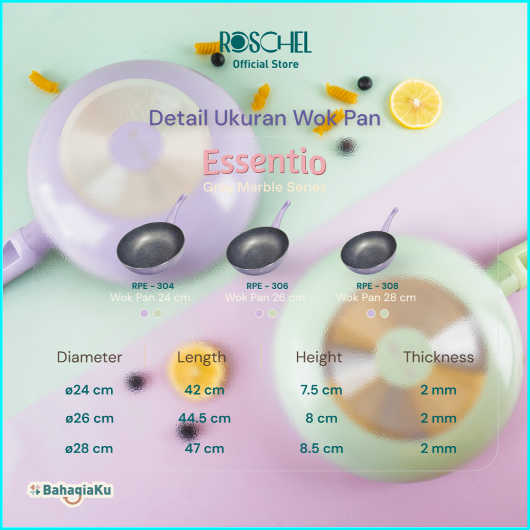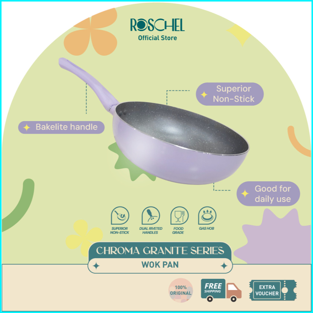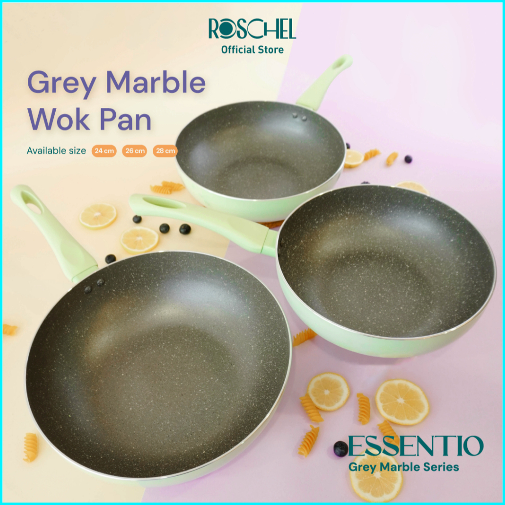 Roschel Essentio Marble Non-stick Wok Pan 20 24 26 28 Cm Panci Wajan Penggorengan Kuali Anti Lengket