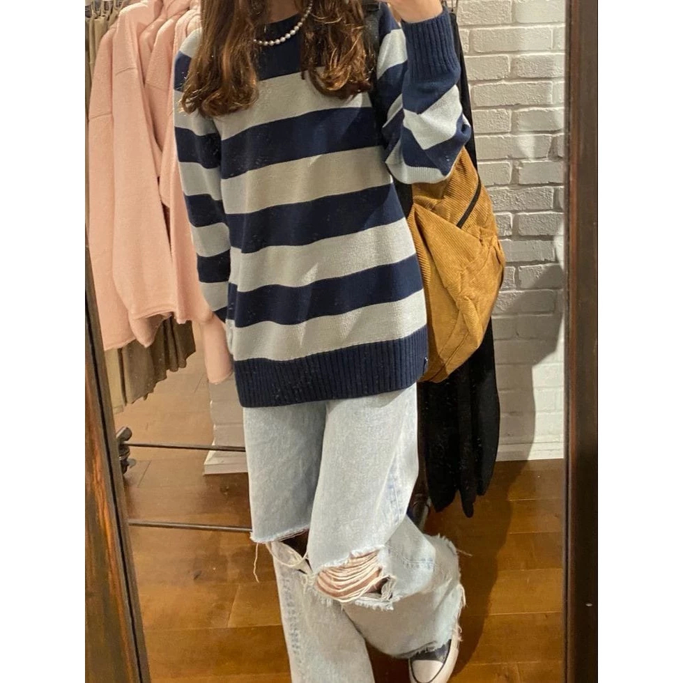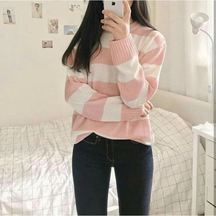 Sweater Wanita Melody Knitwear Series Rajut Premium Sweater Korean Style Lengan Panjang Motif Stripe Terbaru Terlaris