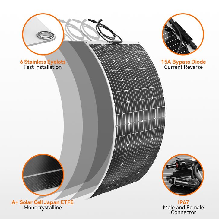 PowMr 100W Panel Surya Fleksibel Sel Surya Monokristalin Kabel DIY Luar RU -ANGan Mobil RV Sistem Tenaga Isi