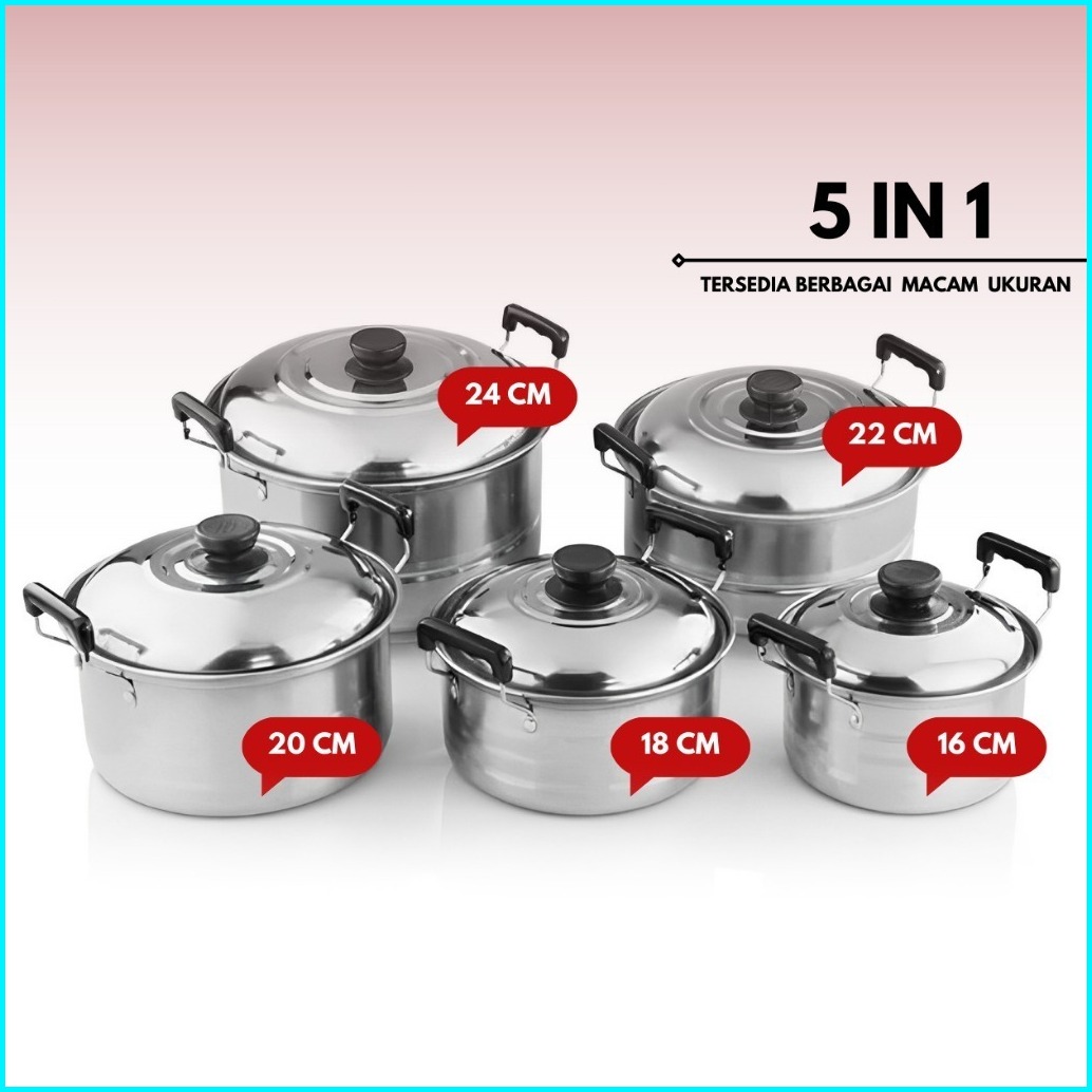 Stainless Panci Set 5 Susun Tutup Stenlis Panci Set 5 Susun Stainless Bahan Tebal Premium