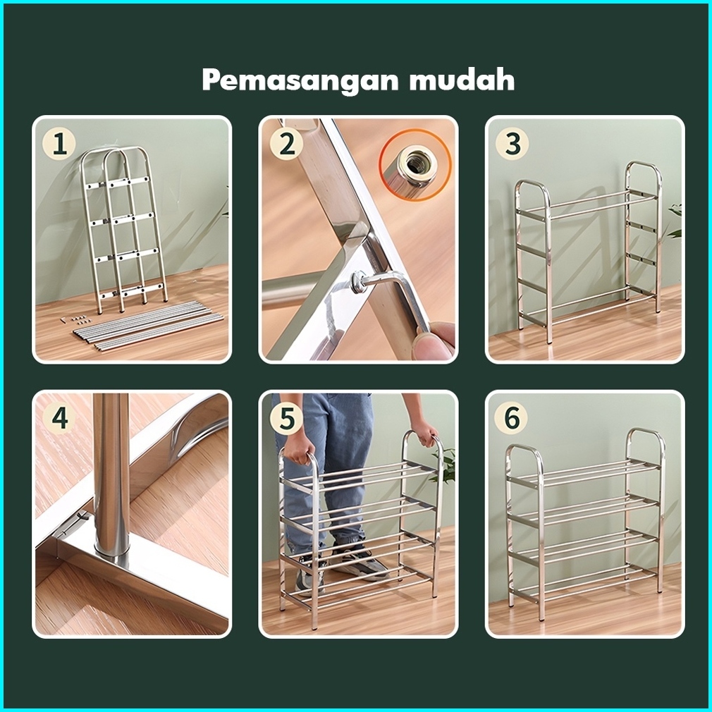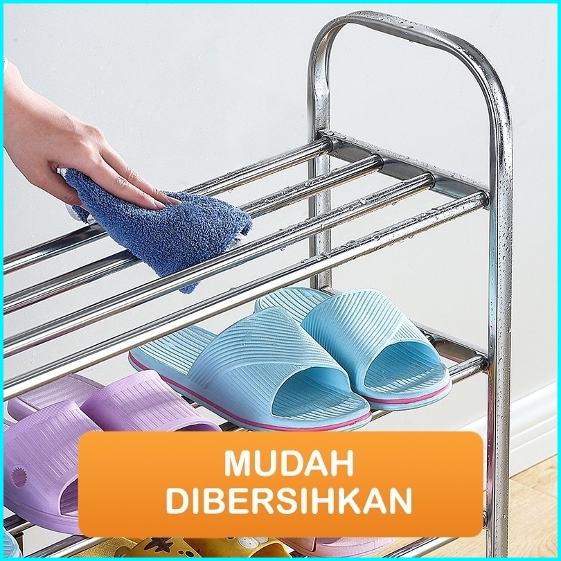 Funnycook Rak Sepatu Sandal Stainless Steel Portable Kuat Anti Karat Tempat Sepatu Multifungsi 3 4 5 Tingkat