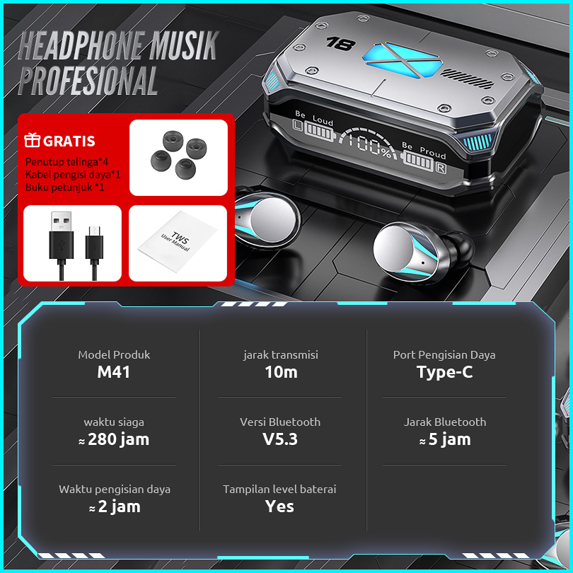 Tws Bluetooth 5.3 Newest Version M41 M25 Headset Bluetooth Full Bass Stereo 4500mah Power Bank