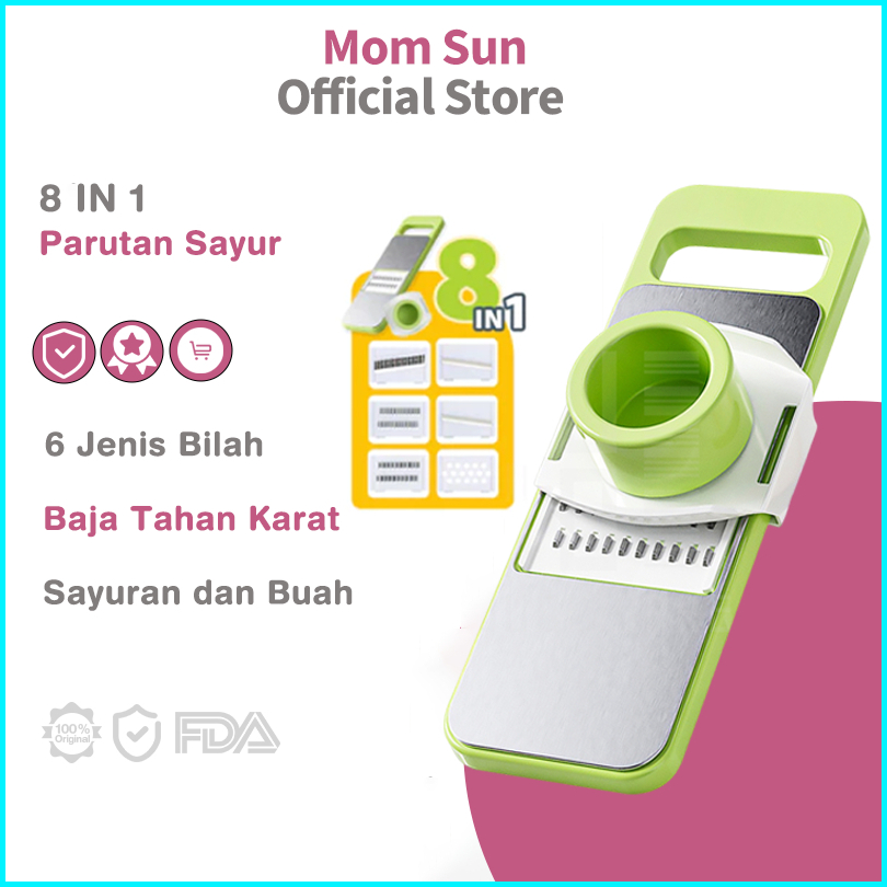 Momsun Parutan Sayur Dan Buah 8 In 1 Parutan Serbaguna Baja Tahan Karat Pemotong Sayur Vg01