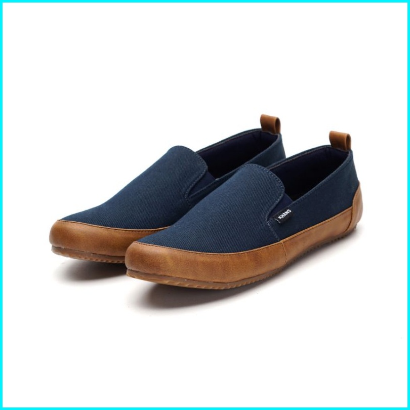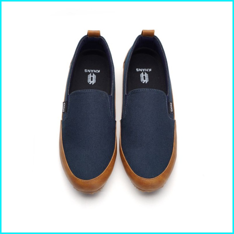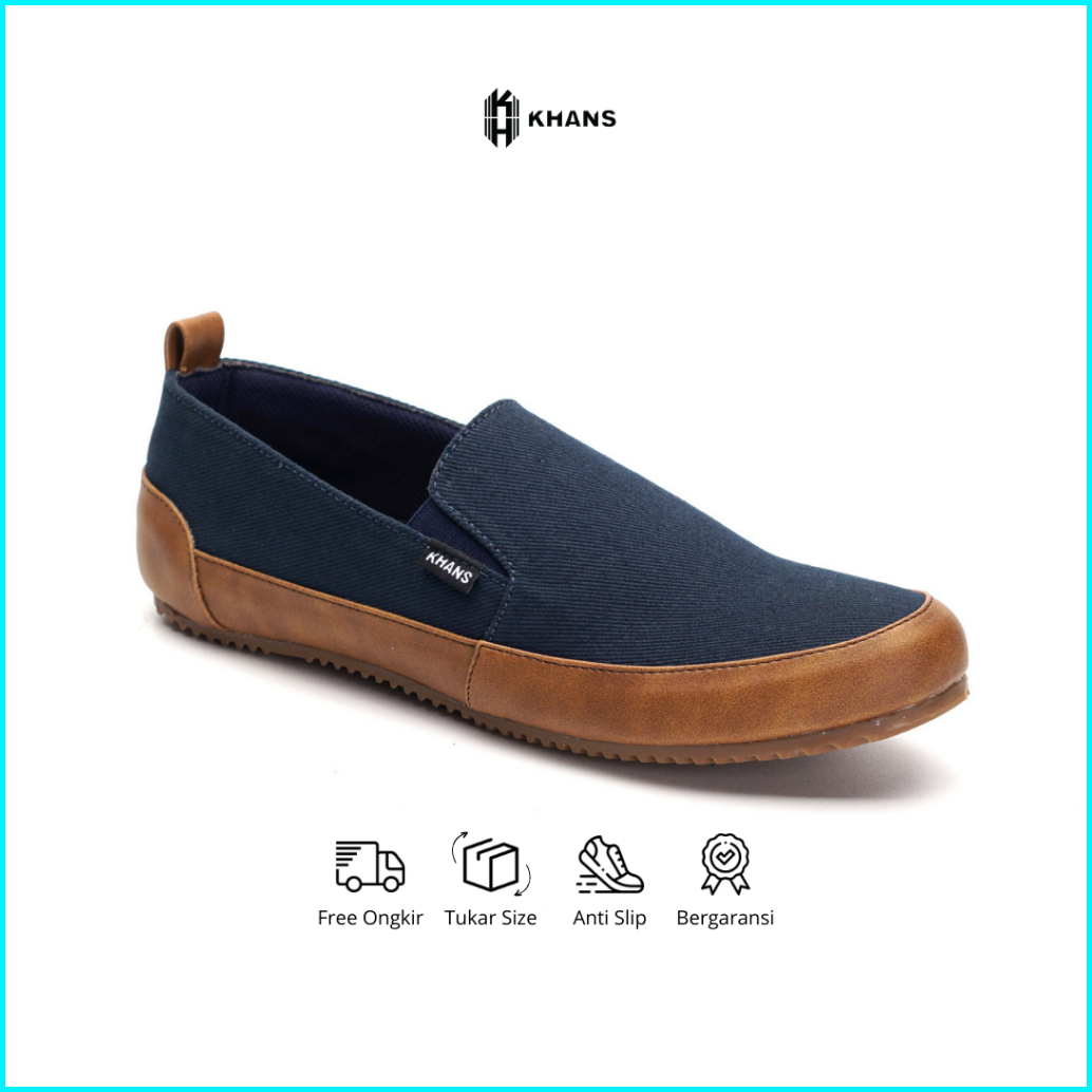 Khans - Kylian Navy Sepatu Slip On Formal Casual Pria Kulit Kerja Resmi Kuliah Kondangan