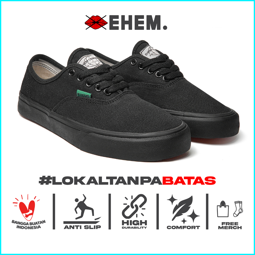 Ehem - Sepatu Sneakers Unisex Pria Wanita Authent Full Black