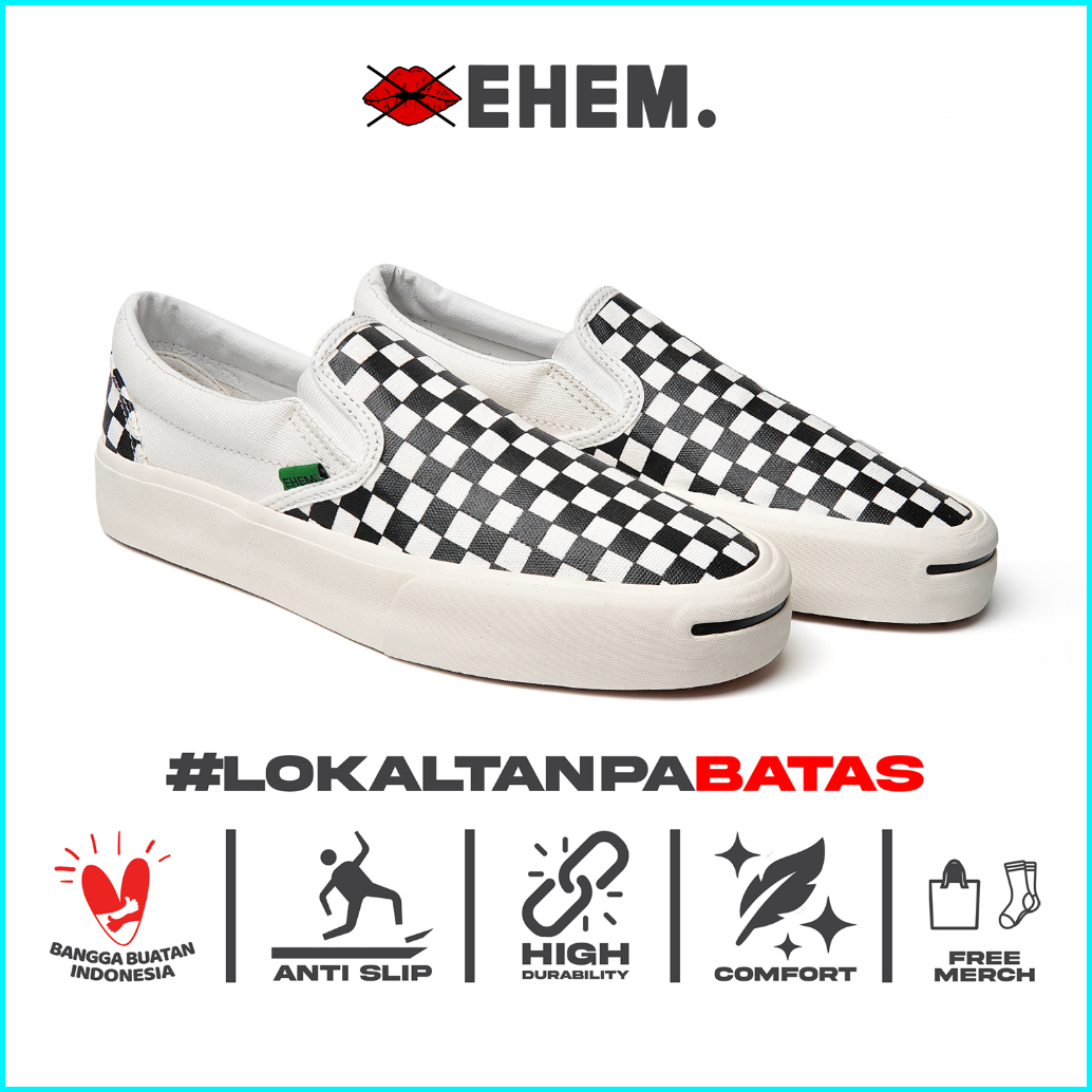 Ehem - Sepatu Sneakers Unisex Pria Wanita Slip On Audastic Checkerboard
