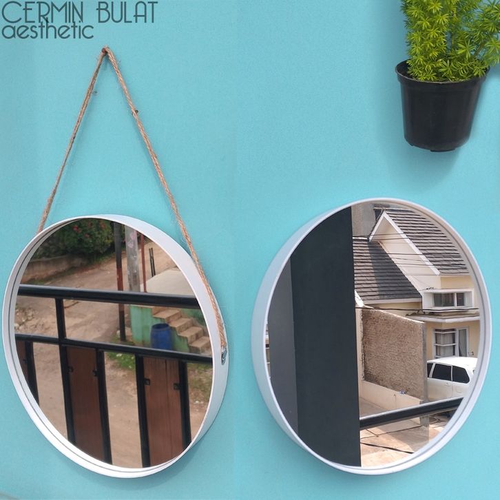 Cermin Bulat Aesthetic Kaca Cermin Gantung Tali