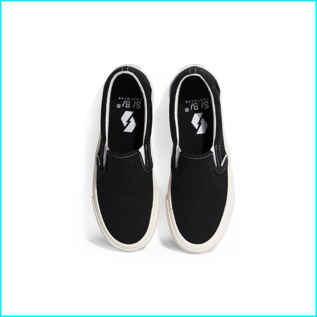 Saba Vintage Slip On Black White Retro - Sepatu Sneakers Casual Pria Wanita Original 100 Vtg 01
