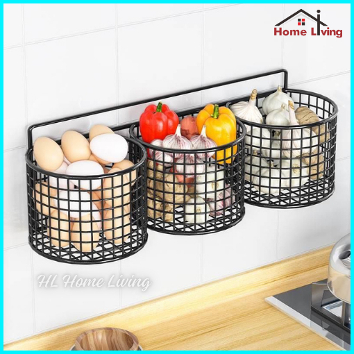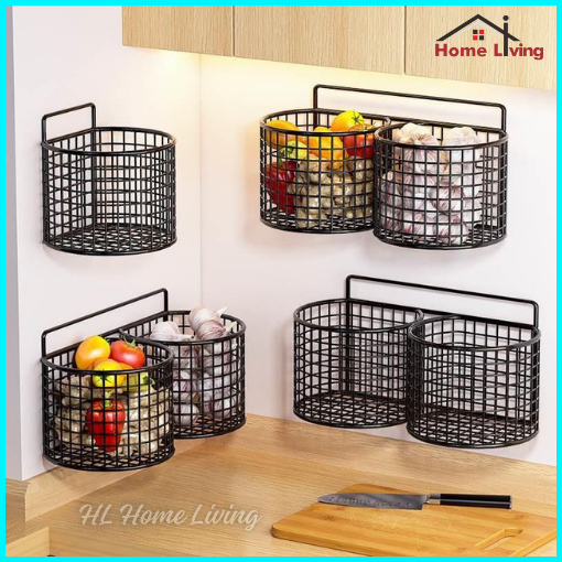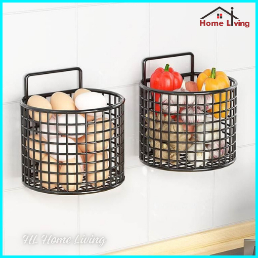 Hl Rak Keranjang Bulat Tempel Dinding Rak Keranjang Bawang Tempat Penyimpanan Bumbu Dapur