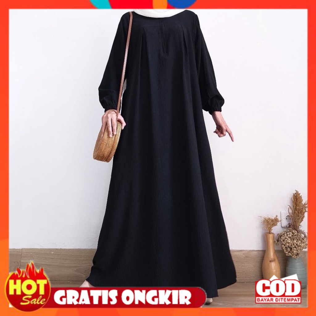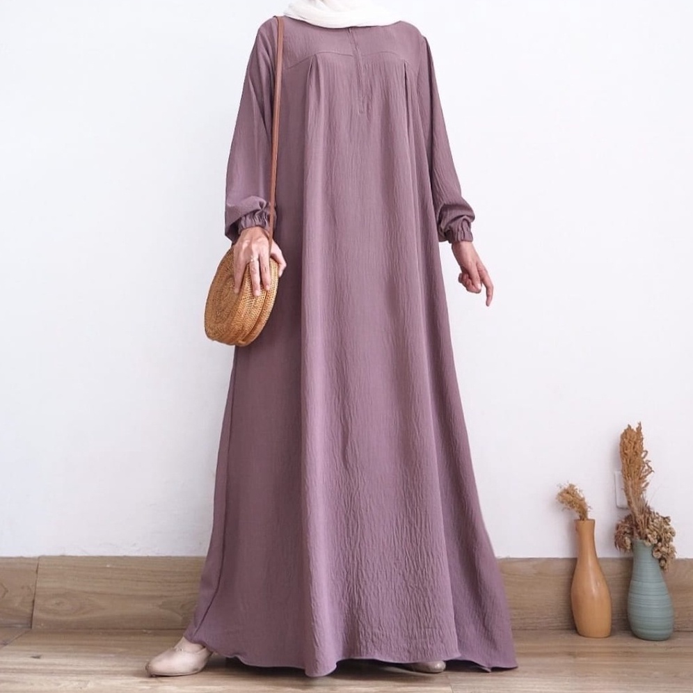 KAIN ADEM HALUS TEBAL / Gamis Polos Terbaru Dengan Bahan Crinkle Airflow Gamis Muslim Busui Sleting
