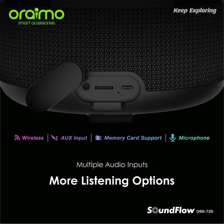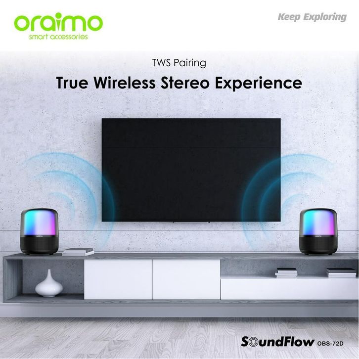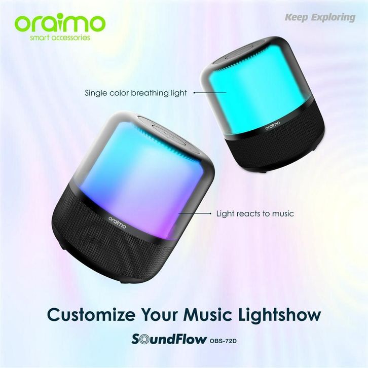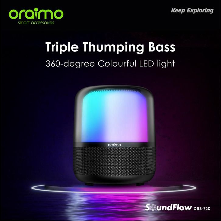 Oraimo Bluetooth Speaker Sound Flow Tws True Wireless Stereo 360 Degree Triple Thumping Bass Led Light Obs-72D