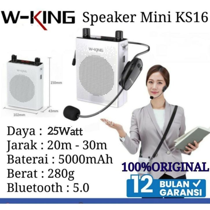 Wking Ks16 Speaker Mini Bluetooth Pinggang Mp3 Tour Guide Wisata Guru Mengajar 1 Mic Headset Wireless Portable Super
