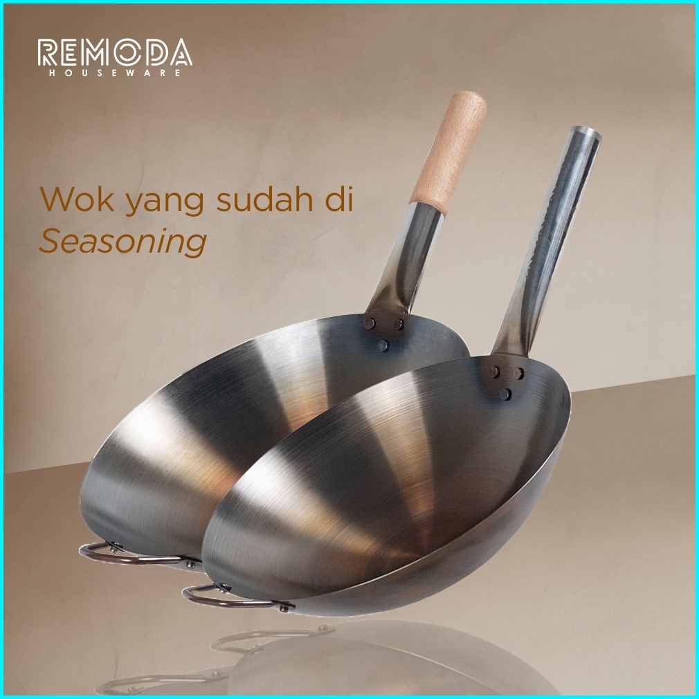 Calypso Wok Kuali Wajan Penggorengan Sudah Seasoning Anti Lengket 30-40cm Stainless Steel