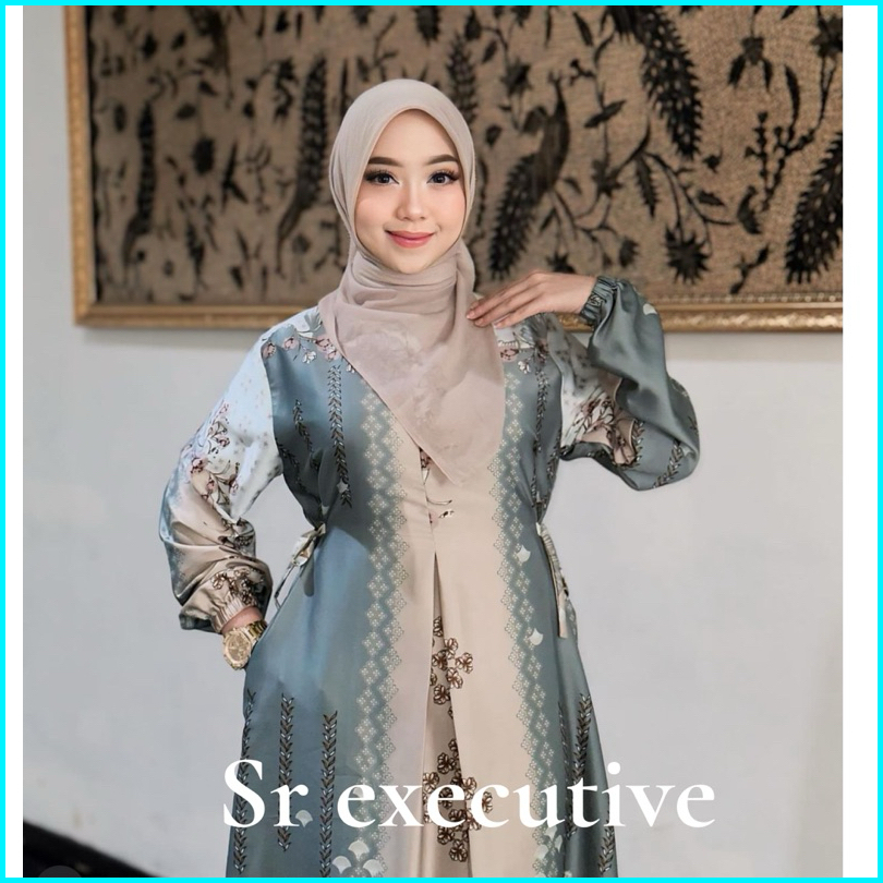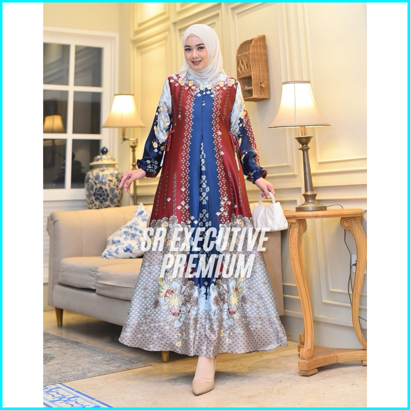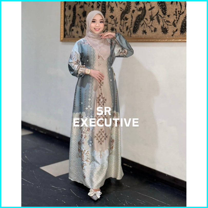 Gamis Silk Premium Motif Terbaru Bunsui Medina Dress Kondangan Warna Cream Navy Sage Terlaris Lebaran Muslim Jumbo Ld 13