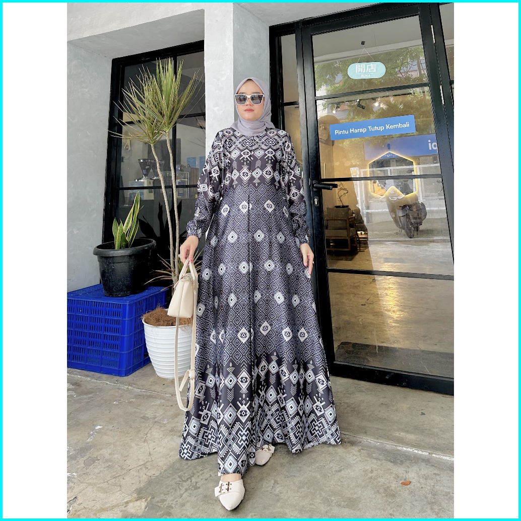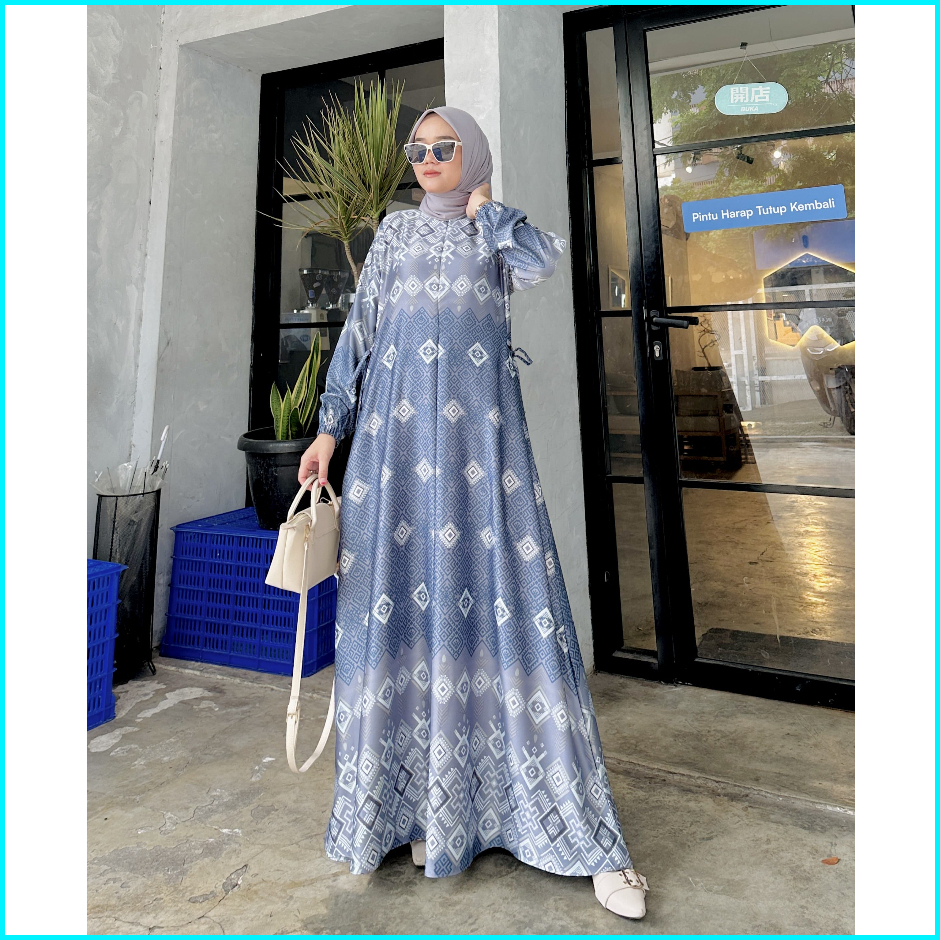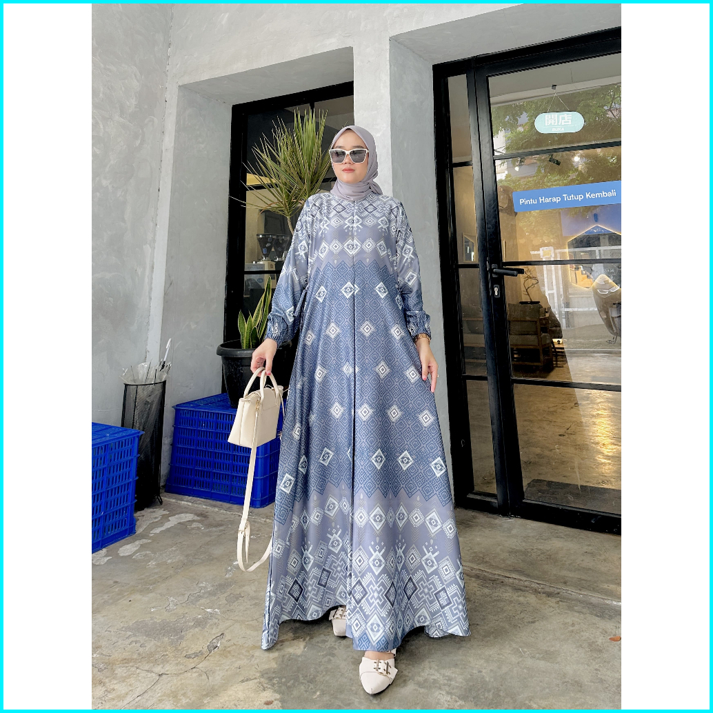 Gamis Aura Gamis Pesta Silky Printing Premium Bunsui Jumbo Terbaru Dress Mewah Makmara Silk Wanita Fashion Muslim Seraga