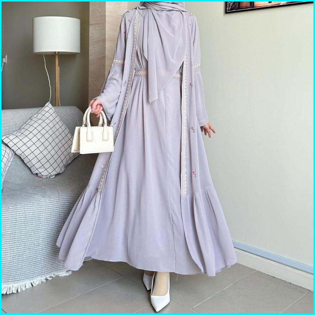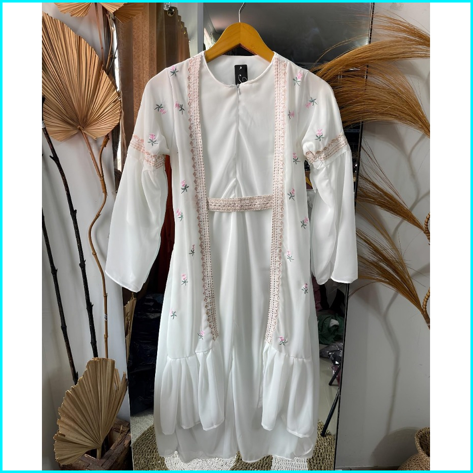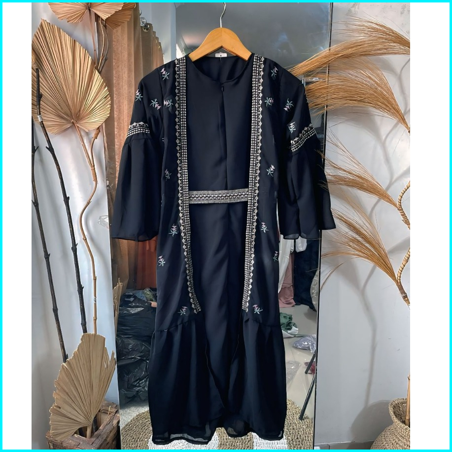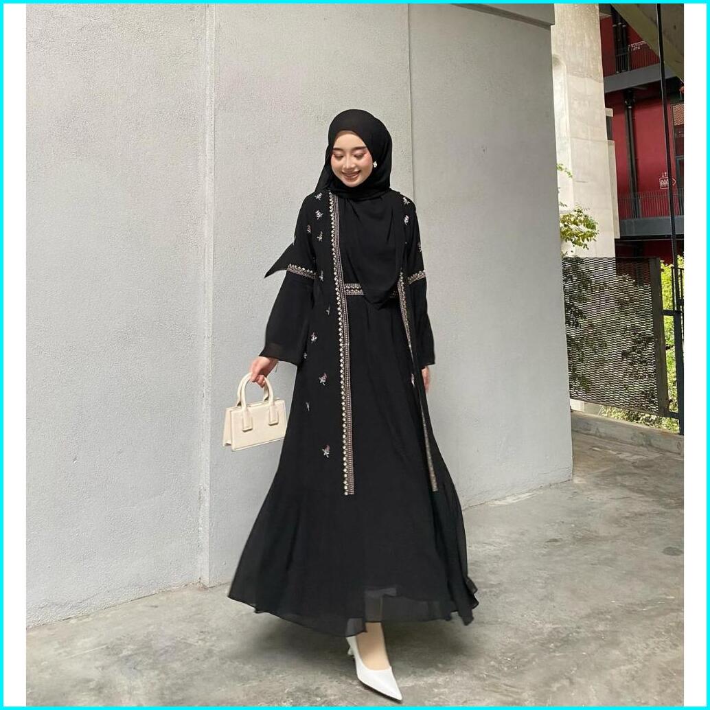 Safwa Abaya Kondangan Terbaru Ceruty Babydoll Mix Bordir Trendi Wanita Muslimah Ukuran S M L Xl Dan Xxxl