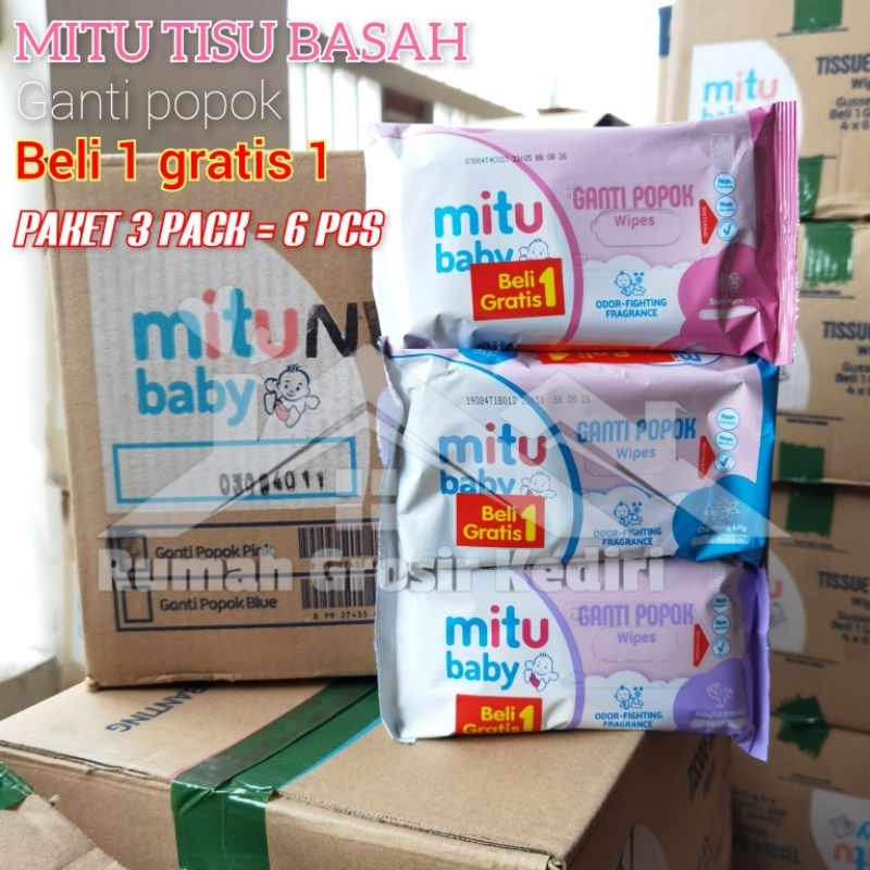 3PACK 6PCS MITU BABY GANTI POPOK 50 SHEETS TISU BASAH 4 VARIAN AROMA