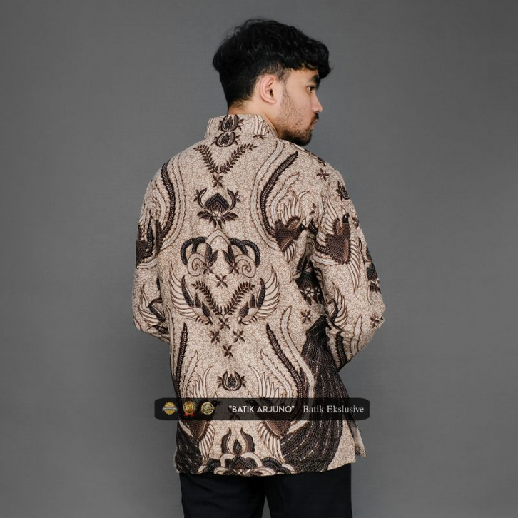 Kemeja Batik Slimfit Pria Lengan Panjang Baju Batik Kondangan Full Furing Burung Coksu Ivory