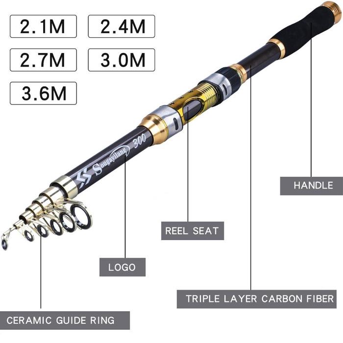 Sougayilang 2.1-3m joran pancing Serat Karbon joran pancing laut joran teleskopik 5.2:1 Rasio