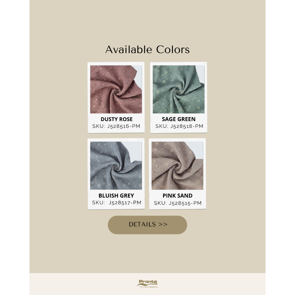 DUSTY ROSE, SAGE GREEN, BLUISH GREY, PINK SAND