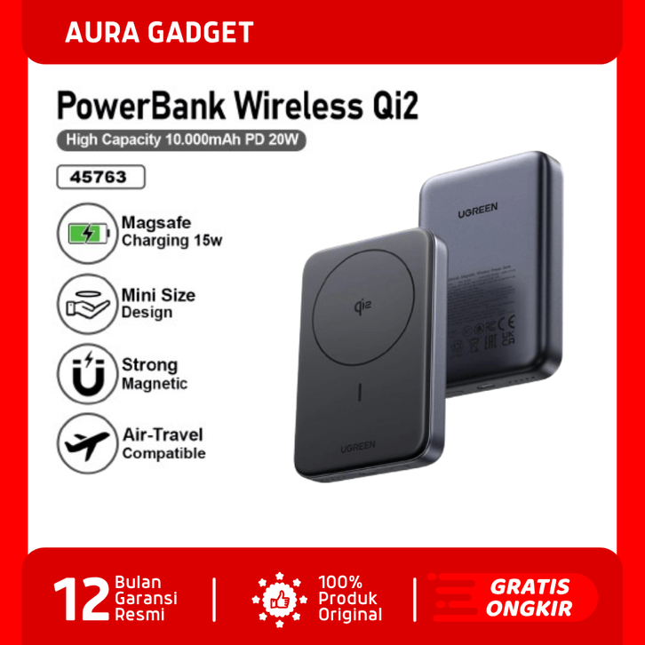 [Mall] PowerBank UGREEN Magsafe Wireless Fast Charging 15w PD Type C 20w For iPhone Samsung Huawei