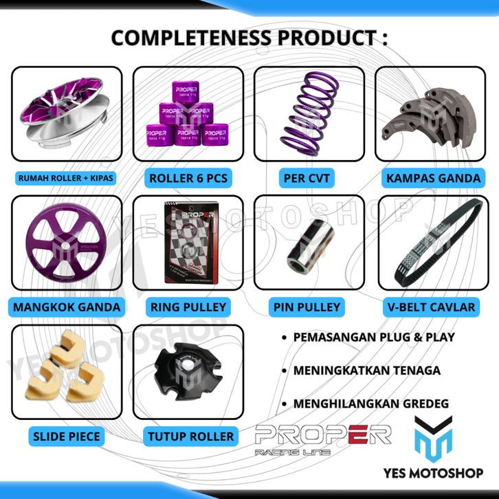 PAKET UPGRADE CVT PROPER RACING LINE VARIO 125 150 PCX ADV 150 PULLEY SET MANGKOK KAMPAS GANDA ROLER