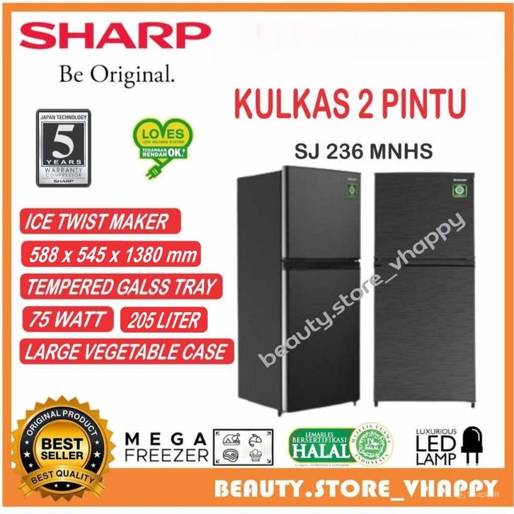 Kulkas Sharp 2 Pintu tanpa bunga es Refrigerator 205 liter SJ-236MN-HS