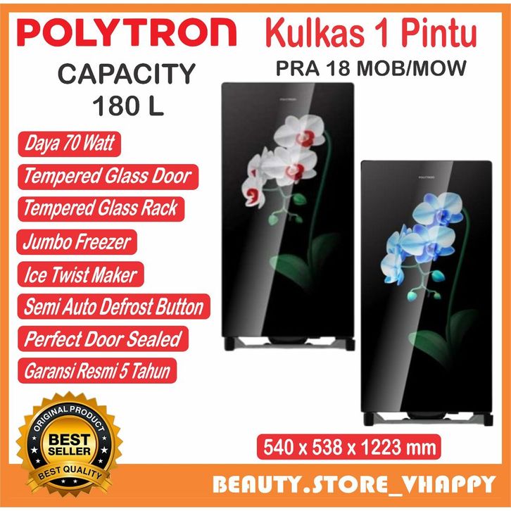 kulkas polytron 1 pintu pra 18 mob / pra 18 mow pintu kaca garansi resmi