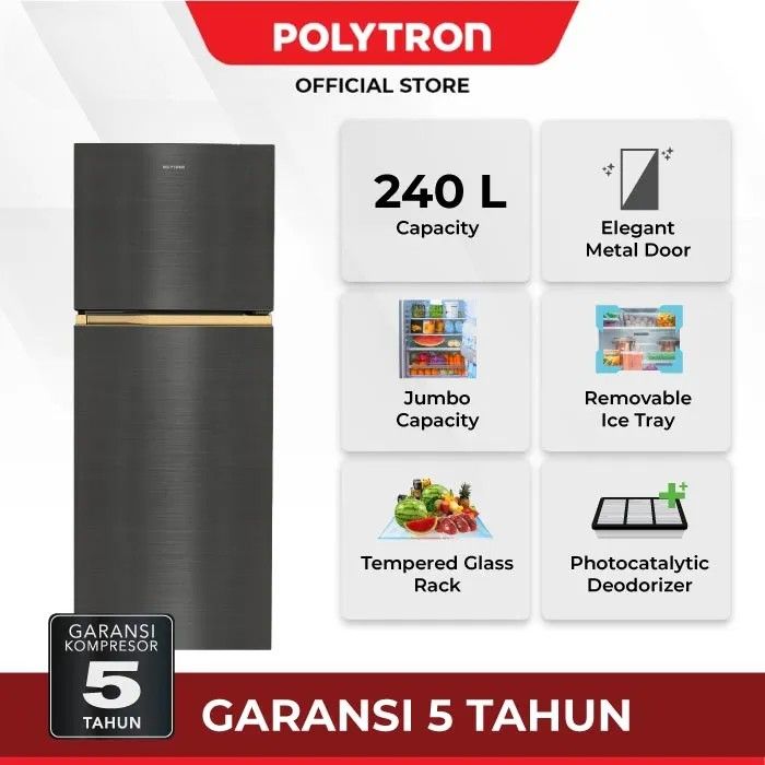 Kulkas Politron 2 Pintu Metallic Lemari Es Polytron 240 liter PRW 252T