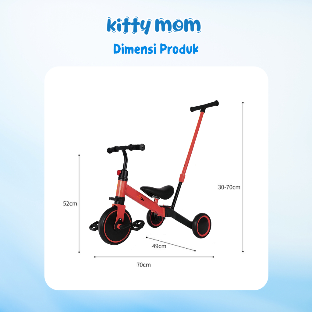(FLASH SALE) Kitty Mom - Sepeda Anak Tiga Roda Premium Tricycle Mainan SNI Dengan Keseimbangan Balance Push Bike