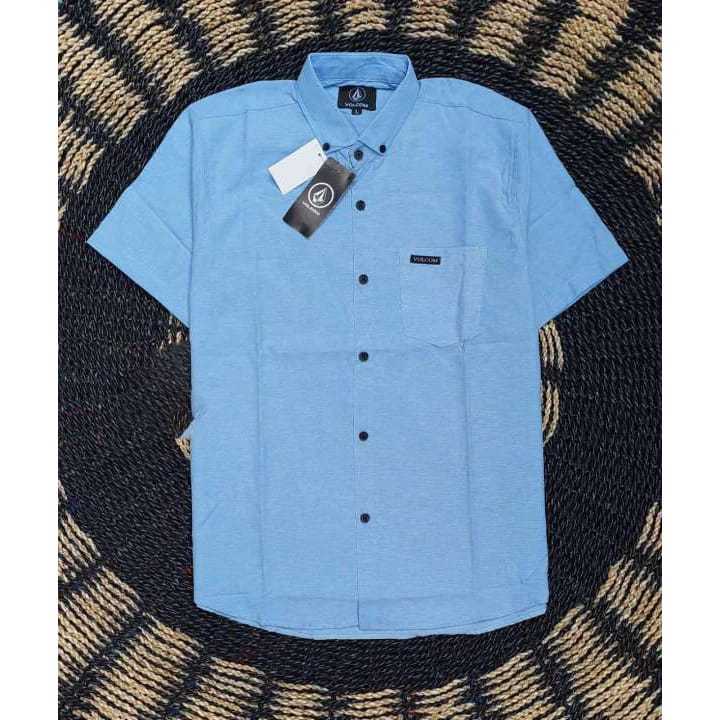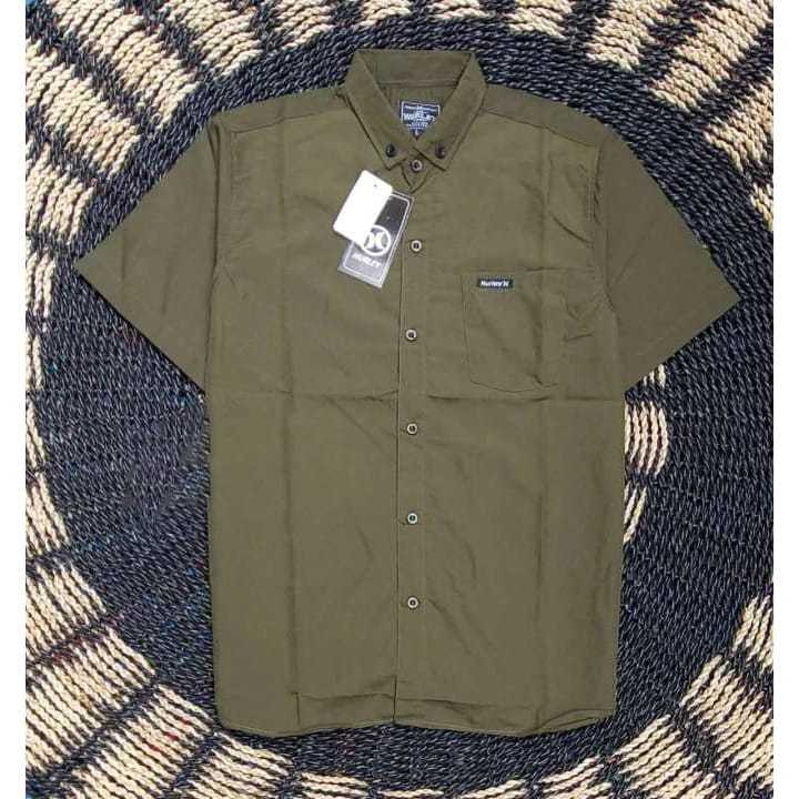 (Gratis Ongkir) Kemeja Pria Lengan Pendek Katun Polos Adem