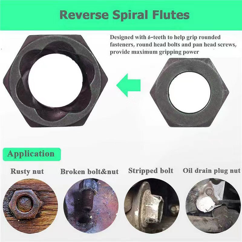 10 13 14 PCS Alat Pembuka Baut Mur Hex Rusak 9mm-19mm Set Kunci Ring pass Damaged Screw Bolt Nut Remover Patah Dol Screw