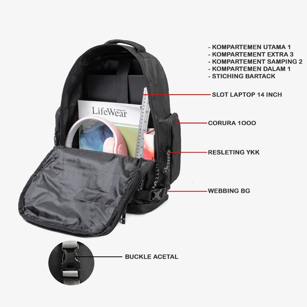 TAS RANSEL PRIA DEWASA GEOFF MAX ARLOS BLACK BACKPACK IMPORT OFFICIAL STORE