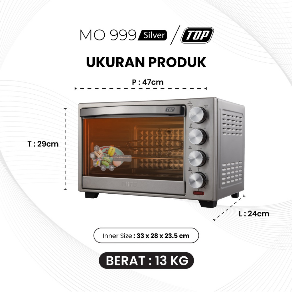 MITO Electric Oven MO999 TOP SILVER 28L Original Pemanggang Kue dan Makanan