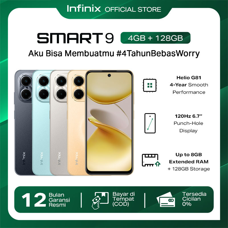 Hp Infinix Smart 9 4/128GB - Up to 8GB Extended RAM Terbaru 2025 - Infinix Official Store