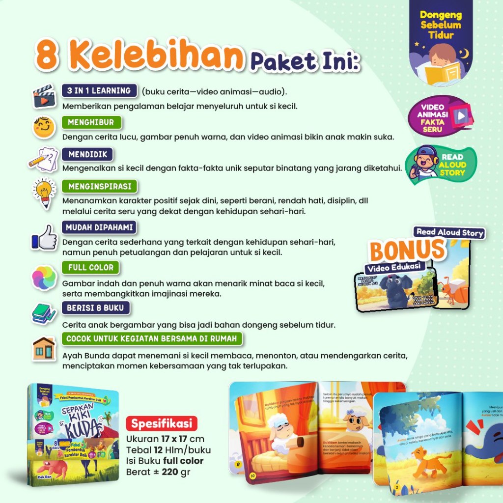 Buku Fabel Karakter Baik - 8 Buku Dongeng Penguat Karakter untuk Anak Untuk Anak Usia 3+ Bonus Video